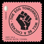 ANRI SALA (b. Tirana, Albania, 1974) #AnriSala; By tying the insignia of revolution to a palindromic thought – the chicken and egg causality dilemma – the stamp aims at the uncertainties and the misgivings of these times. Recent exhibitions include ‘AS YOU GO’ at @fundacionbotin and ‘AS YOU GO’ at @castellodirivoli
