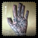 LAURA LIMA (b. Governador Valadares, Brazil, 1971) @l_aura_l_ima; Glove, stamp-instructions for a drawing to be made on a hand: the pigmentation of a fabric woven on the skin made with ink, which can be redone every day. This stamp is a guide / inspiration for the drawing. Recent exhibitions include ‘Qual’ at @galerialuisastrina and ‘Balé Literal’ at @agentilcarioca. Upcoming exhibitions include ‘Lost in Translation’ at @agentilcarioca.